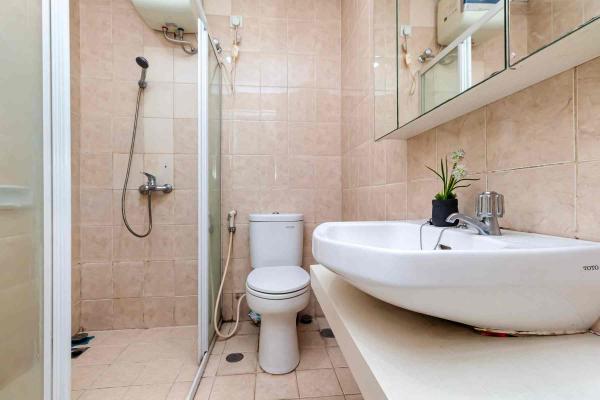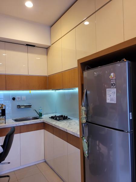 - Condition: Fully furnished. All rooms with air-conditioning, King Size 180 x 200 cm bed with pillows, bed sheets and bed cover, Medium size 100 x 200 cm bed with pillows bed sheets and bed cover, under-bed storage, reading light, computer working table, wardrobe cabinet in each room, modern bathroom, water heater Ariston, and washer with spin-drying machine. Kitchen with cabinet, large refrigerator, 2-burner gas Modena stove, Samsung Microwave, rice cooker, cooking utensils, eating utensils, cleaning tools, dining table with 4 chairs. 2-seater Sofa, TV cabinet, LED TV Samsung 32″, and cable TV.